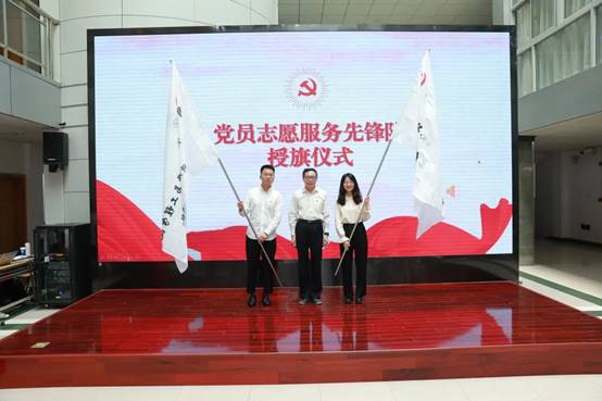 大会最后由党委书记柳剑雄为党员志愿服务先锋队授旗。