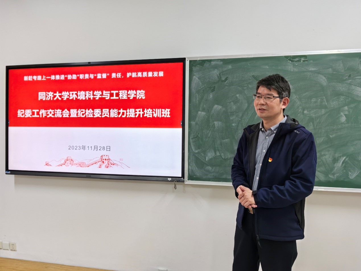 为深入学习贯彻习近平总书记重要讲话和重要指示批示精神,坚决落实二十届中央纪委二次全会工作部署,推动纪检干部教育整顿进一步走深走实,2023年11月28日下午,同济大学环境科学与工程学院召开了2023年度纪委工作交流会暨纪检委员能力提升培训班。会议由学院党委副书记、纪委书记黄清辉主持,纪委委员、支部纪检委员等22人参加了本次培训。