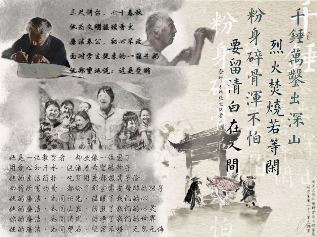 为深入贯彻习近平总书记关于党风廉政建设、廉洁文化建设的重要论述,落实中共中央办公厅印发的《关于加强新时代廉洁文化建设的意见》,同济大学纪检监察机构今年发起了“创清廉同济 扬新风正气”廉洁文化作品征集活动,环境科学与工程学院积极组织师生支部开展廉洁文化创作,并推荐优秀的廉洁文化作品参赛。2023年12月28日传来喜讯,我院作品获得二等奖1项、三等奖4项,学院纪委获得“最佳组织奖”。