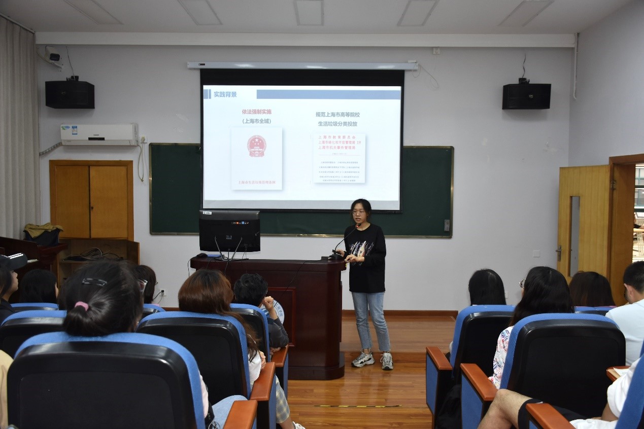 “知行杯”获奖团队代表尹晓庆介绍了团队关于江苏省界牌镇厕所革命主题的社会实践,充分体现了坚定目标,响应国家整治号召、直面问题,改善农村人居环境、脚踏实地,扎实打牢团队基础的三步走战略。