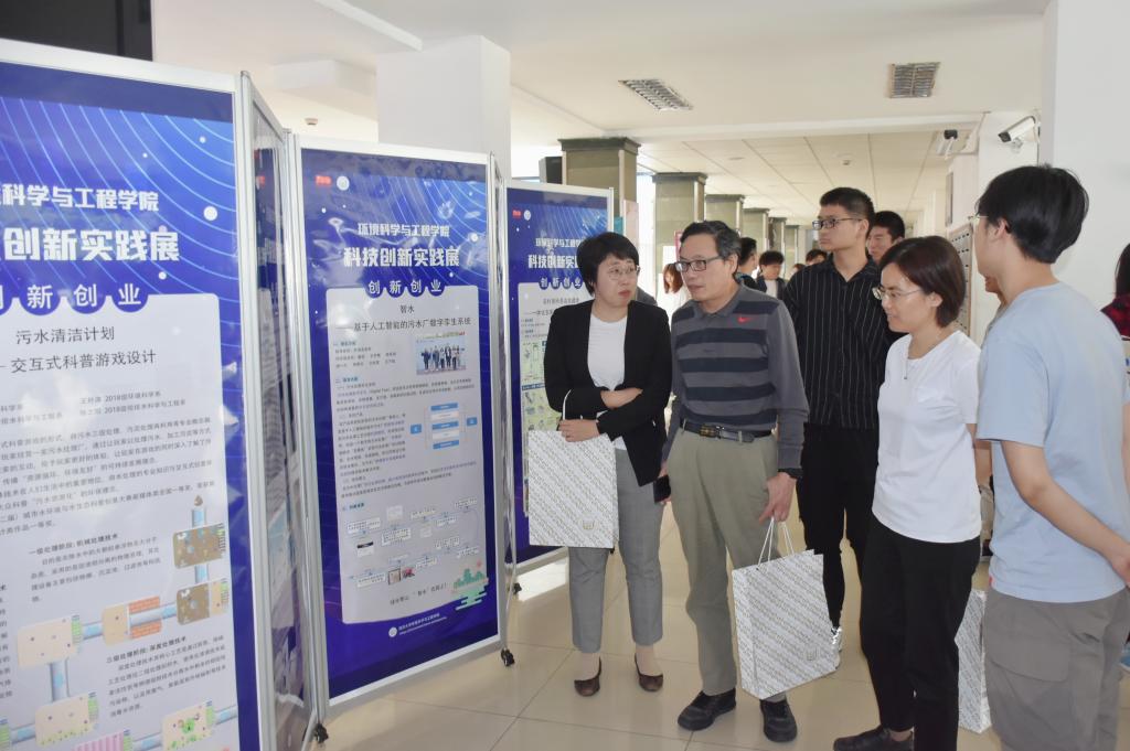 环境科学与工程学院科技创新实践展围绕创新创业、社会实践等共展出16个项目,老师同学们纷纷到大厅参观,各团队代表对展出项目进行介绍。(环境学院学生会 张婧怡)