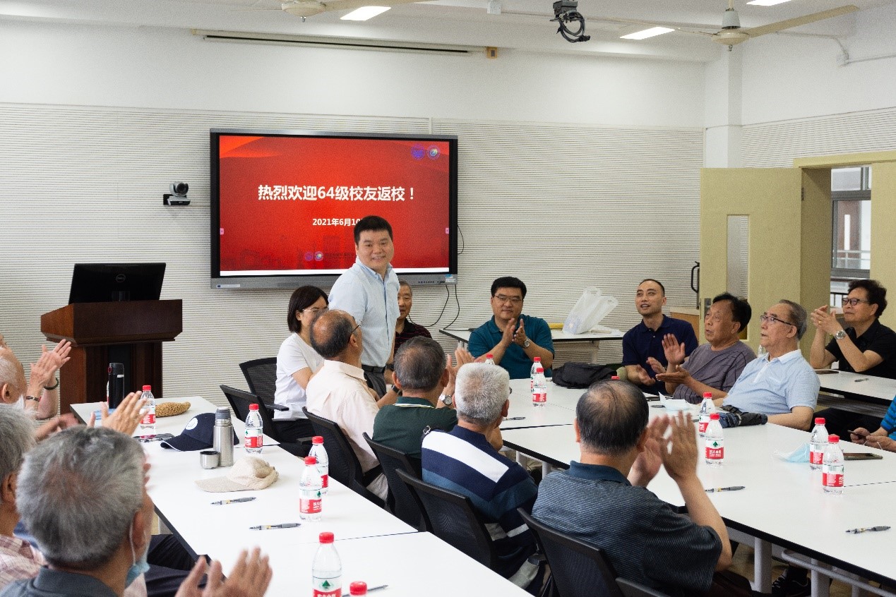 2021年6月10日,同济大学环境科学与工程学院 64 级给排水班校友回到母校,回首青葱岁月,共话同窗往事。同济大学环境科学与工程学院老领导、时任团总支副书记周增炎,环境学院副院长徐斌、陆志波,党委副书记陆丽君,环境学院校友分会秘书长、上海济联数字科技有限公司总经理鲁骎共同参加了本次活动。活动由校友陈卫民主持,虽然各位校友已经年过古稀,但依旧精神矍铄,神采奕奕,心系学院。返校前期,缪丽珍等校友与学院积极对接各项事宜,精心安排各项行程。