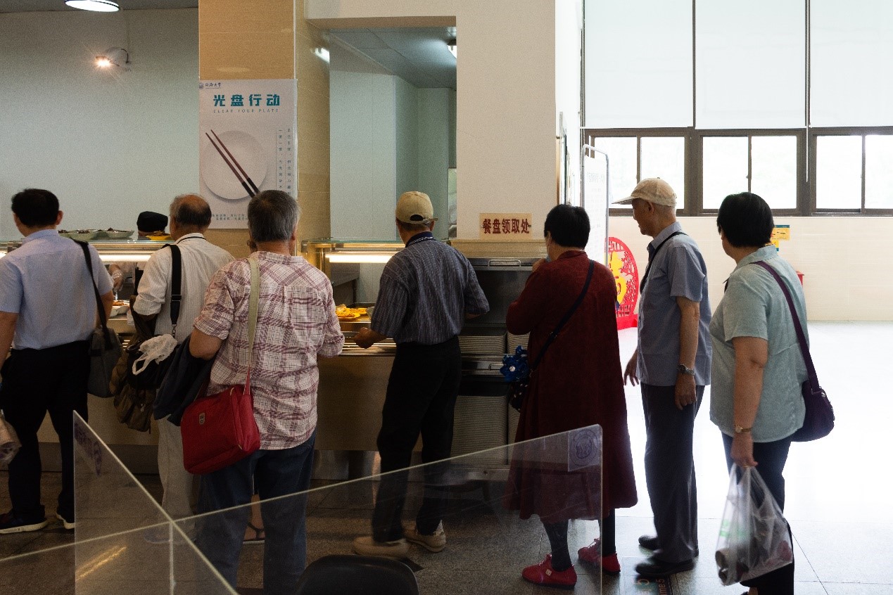 座谈会结束后,校友们沿着当年走过的路来到了学苑食堂,重新体会了一下学生时代的生活。在熙熙攘攘的食堂里,校友们亲切地交谈,50年后的重逢让他们止不住话匣,从校园生活到往事回忆,仿佛大家还是当年那些风华正茂的有志青年。