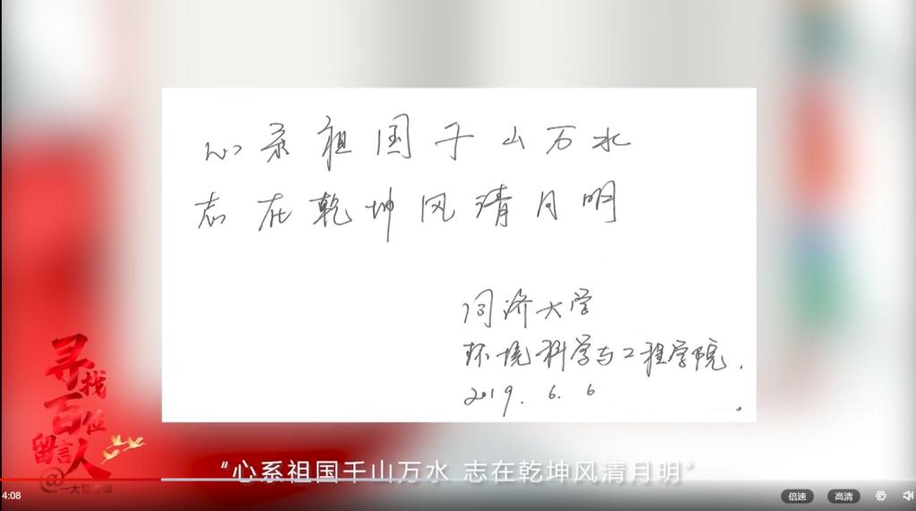 我院辅导员老师们于2019年6月6日的留言“心系祖国千山万水,志在乾坤风清月明”被中央电视台“寻找百位留言人-一大留言簿”节目组收录。