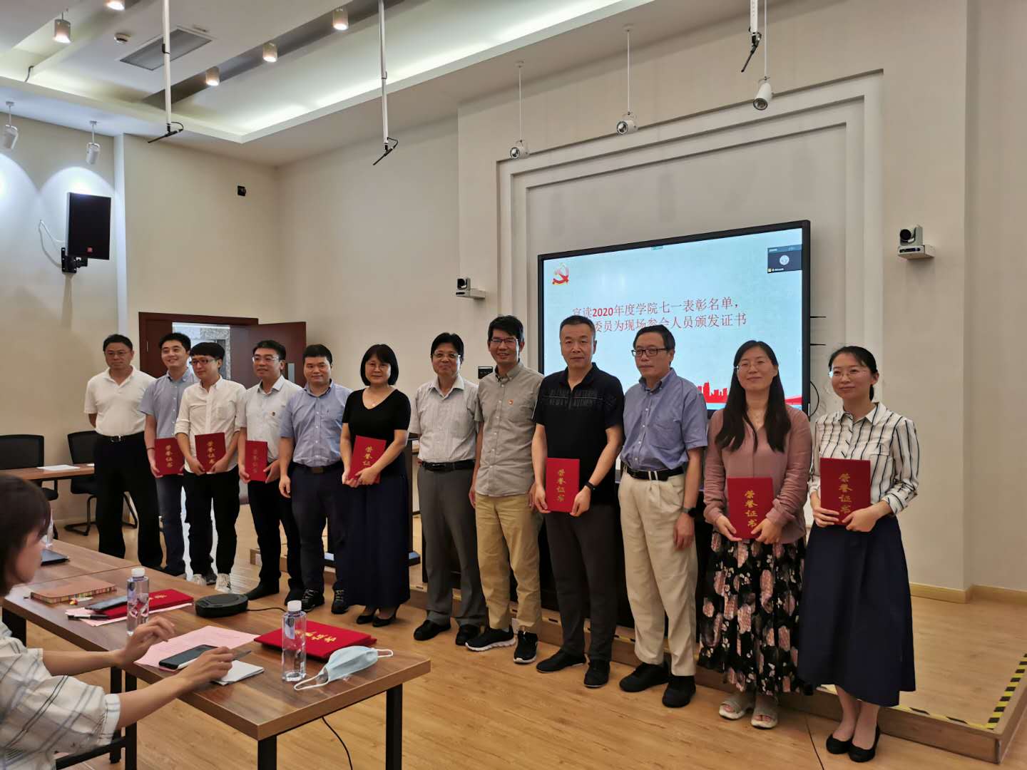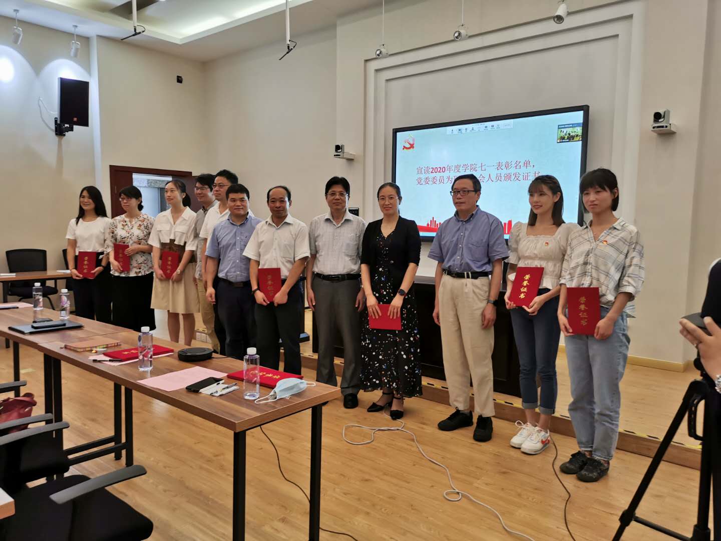 黄清辉副书记宣读2020年度环境学院七一表彰的先进基层党支部名单,优秀党务工作者,优秀党员等名单。党委委员为现场参会人员颁发证书,并为现场出席党员代表们合影,会议在愉快的气氛中结束。