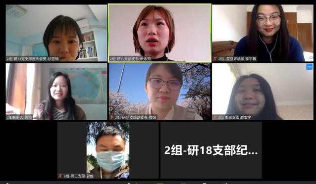 在几位老师进行分享后,研究生第六党支部书记朱永秀、研究生第七党支部书记杨心悦、研究生第八党支部屈扬、本科生党建团建联合会代表鲁思琪、研究生党建部高年级组组长陈诗艳分别分享了基层党建工作的实践与思考,主题分别为“抓好三会一课,筑牢党建基础”、“主题教育背景下组织生活新模式的探索与思考”、“贯彻对标争先,创建特色党支部”、“温暖关怀备至,携手同心抗疫”、“凝心聚力,彰显担当,做好疫情期间党建工作”。这些主题具有广泛性,且各有侧重,为各支部今后的建设提供了方向。