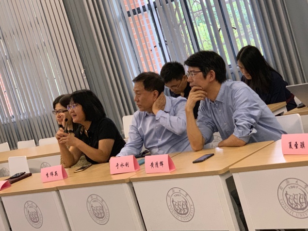 仪式结束后,借此机会,在我校环境科学与工程学院副院长徐斌教授和新疆大学建筑工程学院副院长廖振良教授的精心组织下,同济大学环境科学与工程学院市政工程系与新疆大学建筑工程学院城市建设系,就高校给排水科学与工程专业的教学与科研方面,通过同济大学四平路校区南楼421信息化教室与新疆大学揭牌的智慧教室实现了远程实时对接。