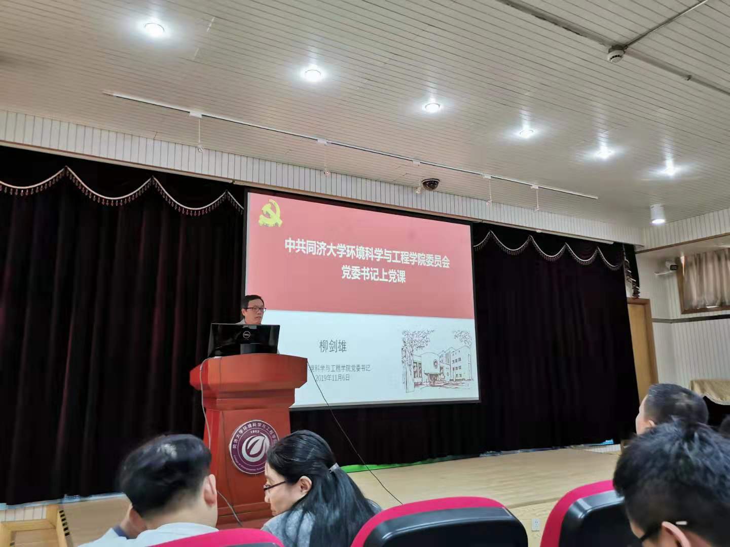 2019年11月6日下午13:30,环境科学与工程学院教职工政治理论学习暨党委书记上党课活动在明净楼121报告厅举行。按照学校“不忘初心、牢记使命”主题教育工作部署,学院党委书记柳剑雄以“加强党的建设,促进一流学科发展”为主题,为师生党员近100人做了一次主题鲜明、信念坚定、内容丰富、鼓舞人心的主题教育党课。学校“不忘初心、牢记使命”主题教育第五指导组副组长徐汉明同志出席。