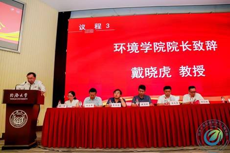 全体师生起立奏唱国歌后大会正式开始,由环境科学与工程学院院长戴晓虎致辞。戴院长向新生们介绍了同济大学及同济环境学院的历史沿革,对环境专业的历史及未来发展做出分析,并寄语环境新生,希望他们脚踏实地,全面发展,在未来做出优秀的成果。