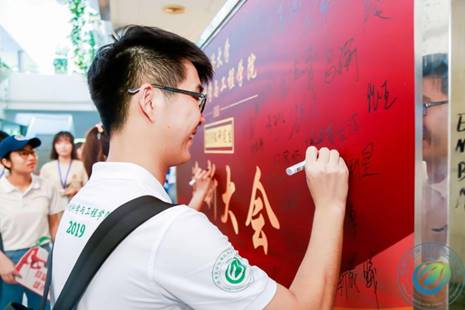 同济大学环境科学与工程学院2019级研究生迎新大会暨立德树人专题报告于8月26日14时在逸夫楼一楼报告厅举行。党委书记柳剑雄,院长戴晓虎,副院长、联合国环境规划署—同济大学环境与可持续发展学院常务副院长李风亭、副院长邓慧萍、徐斌,党委副书记、纪委书记黄清辉,党委副书记钱昕,市政工程系主任夏圣骥,环境工程系教工支部书记尹海龙,环境科学系教工支部书记邱宇平,环境管理所所长王颖,研究生班主任张志强、刘成斌、吴志根、张杰、周磊,环境学院学工办教师冯天磊、鹿伟青、徐畅、格日乐、黄圣洁等出席大会,党委副书记钱昕主持大会。本次迎新大会配有全程照片直播以及入场电子签到,更加方便了老师同学们观看。入场前同学们在签名版上写下名字并合影留念,记录下美好瞬间。