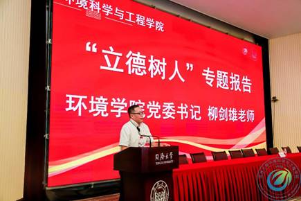 环境科学与工程学院党委书记柳剑雄老师为环境学院2019级全体新生作“立德树人”专题报告。