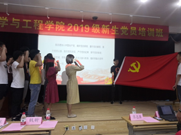 最后钱昕老师宣布环境科学与工程学院2019级新生党员培训班顺利开班并对培训班同学寄语:“在新的历史条件下,我们要时刻回顾牢记自己的初心,认清自己的使命和责任,勇于担当,党员同志应该执着地爱党爱国爱社会主义,并用自己的所学为国家的建设贡献自己的力量。”