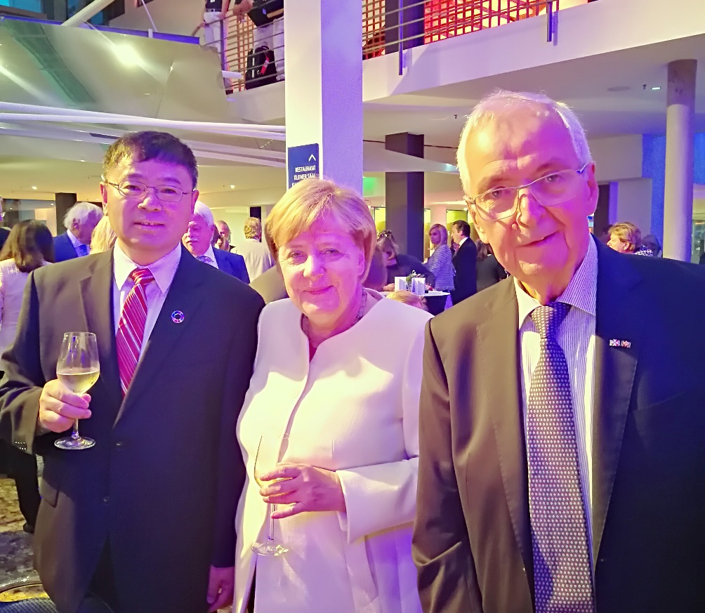 同济大学荣誉教授、前联合国副秘书长、联合国环境署执行主任克劳斯9月16日在波恩荣获德国最高奖——北莱茵-威斯特法伦州奖,德国总理默克尔出席并为托普弗博士颁奖。