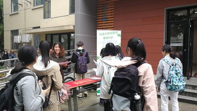 活动前期的宣传工作采用线上与线下相结合的方式。党员和积极分子同学们在学三学四楼的门口开展了垃圾分类线下宣传活动。活动当天设置了易拉宝介绍活动及垃圾分类相关知识,并向同学们分发“校园垃圾分类指南”,通过简明通俗的语言和生动形象的插图吸引同学的阅读兴趣,广泛增加同学们垃圾分类知识,提高垃圾分类意识。同时还进行了承诺垃圾分类签字仪式,活动得到了同学们的广泛关注与积极参与。