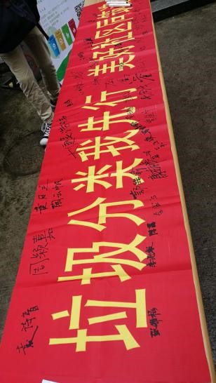 同学们纷纷在横幅上签下自己的名字,表现自己参与垃圾分类活动的热情与决心。线上宣传活动采用制作有关垃圾分类的推送,发布在环境学院党支部公众号上,并利用微信群、朋友圈等渠道转发推广。通过网络平台让大家认识到垃圾分类的重要性,提高大家垃圾分类意识。