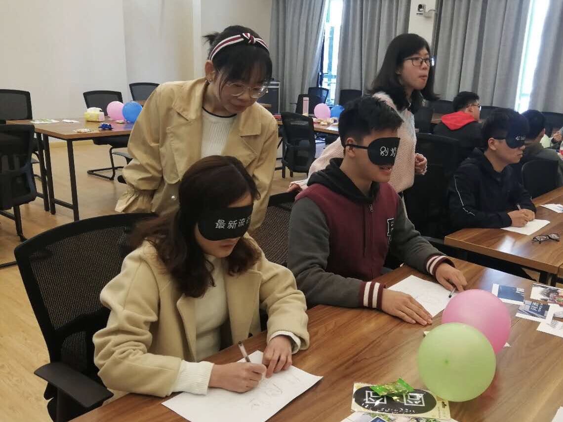 随后,进入了第二个主要环节,心理健康现场互动小游戏。在主持人的引导下一共进行了按图索人、蒙眼作画与夸夸你三个小游戏,通过这些互动在场的同学们不仅互相快速熟识了起来,更是纾解了自己的郁闷与烦恼,同时获得了大家的鼓励与肯定。
