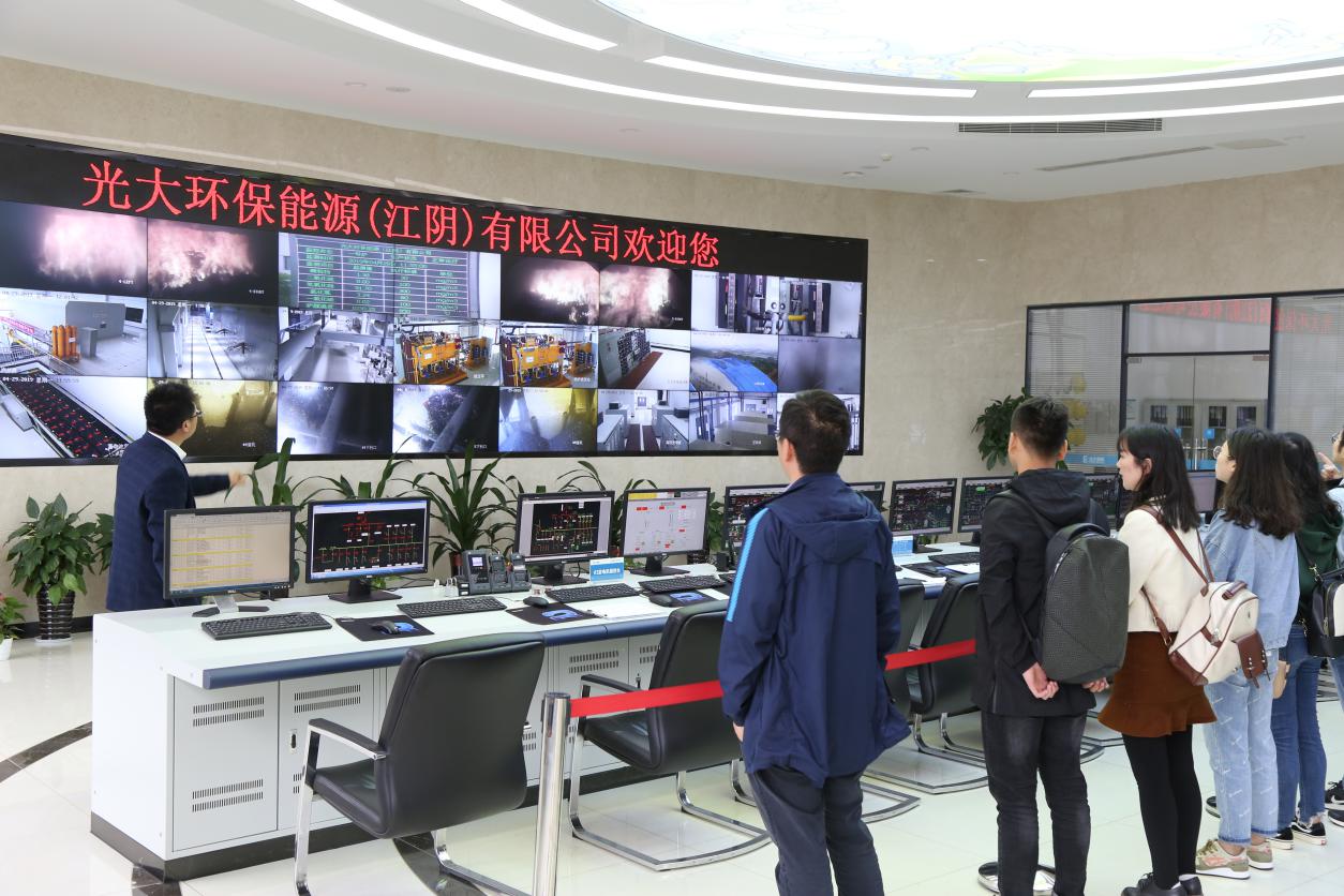 早上7点,上海电力大学、同济大学和复旦大学的同学从上海电力大学乘大巴出发,8点途径华东理工大学接上上海交通大学、华东理工大学、华东师范大学和东华大学。经过近3小时接近中午时分才赶到第一个参观地——江阴市光大垃圾发电厂。怀着对知识的渴望和对生产现场的好奇,同学们都忘记疲劳,跟随江阴市光大垃圾发电厂技术总工徐总实地考察参观了垃圾如何转化为电能的过程,以及中间各处理单元工艺。通过现场跟技术人员的交流互动,大家将书本上的知识点与实际应用进行结合,加强了对专业知识的理解。下午来到第二个参观地——社会主义富华西-华西村展览馆。在专业人员的介绍中,师生们通过阅读珍贵影像资料,领略了华西村建设发展40年的变化历程,拓宽了视野,提高了党性认识。