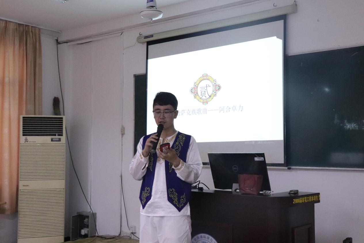 随后,来自哈萨克族的阿合卓力同学带来了一首讲述“梦想”的哈语歌《Arman ay》,歌声动人,富有磁性,让我们看到了哈萨克儿女别样的风情。