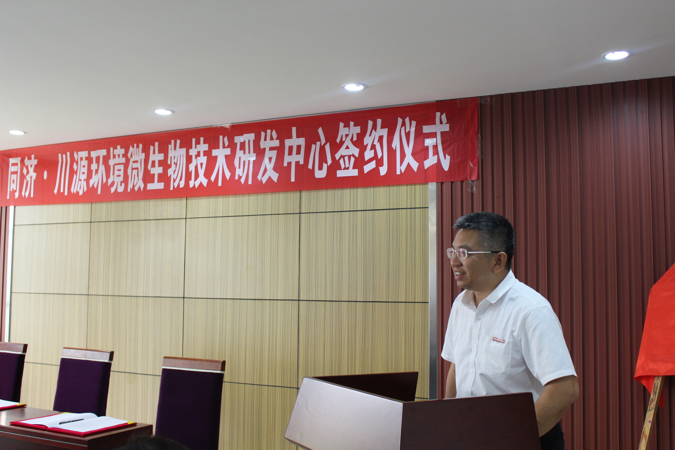5月23日上午,由嘉兴同济环境研究院(以下简称“研究院”)、同济大学浙江学院(以下简称“浙江学院”)、川源(中国)机械有限公司(以下简称“川源机械”)三方筹备的“同济·川源环境微生物技术研发中心”(以下简称“研发中心”)在嘉兴同济环境研究院举行了隆重的签约和揭牌仪式。我院柳剑雄书记到场祝贺并致辞,仪式由我院徐斌副院长主持。