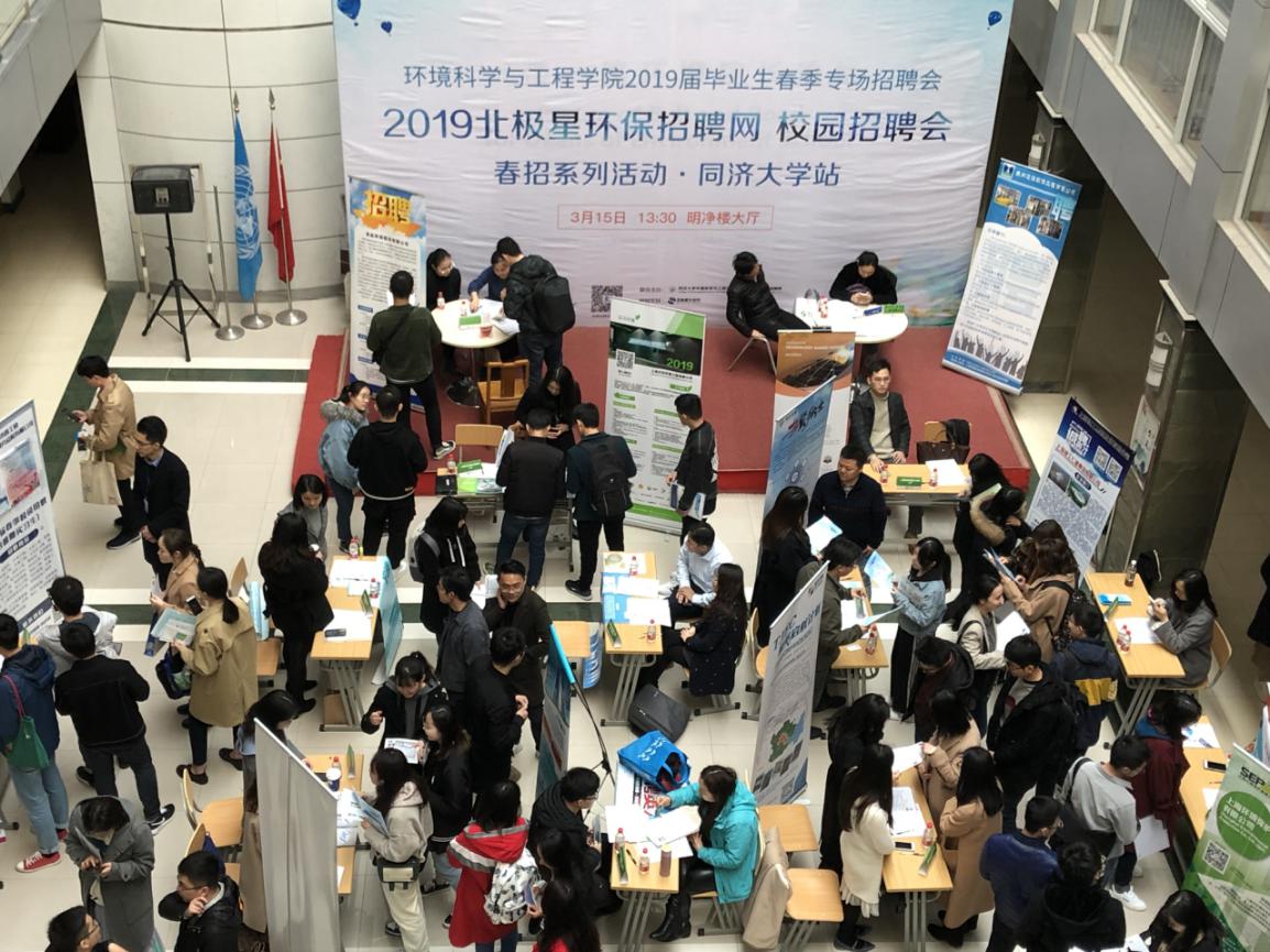 2019年3月15日下午,环境科学与工程学院2019届毕业生春季专场招聘会在明净楼一楼大厅举行。在学院党政领导和校就业指导中心的支持与帮助下,学院就业指导团队积极筹措准备,共邀请到50余家以环保行业为主的相关企业,前来环境学院为学生们提供多样化的就业岗位,促进我院学生找到心仪的单位。