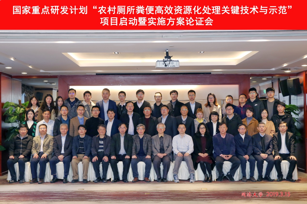 2019年3月15-16日,同济大学牵头承担的国家重点研发计划“固废资源化”重点专项“农村厕所粪便高效资源化处理关键技术与示范”项目启动会暨实施方案论证会在上海君禧酒店召开。