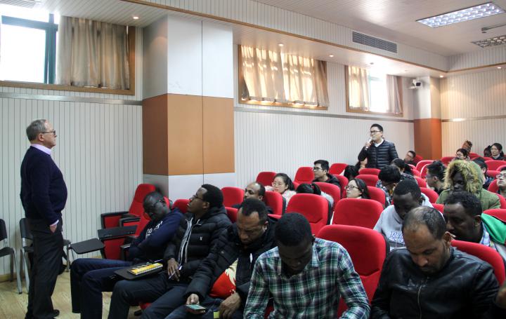 讲座进入提问环节,同学们带着早已准备好的问题争先提问,教授耐心的解答每位同学的问题。讲座结束时,有些同学意犹未尽,继续和教授探讨问题,并希望下次还有机会能听到教授的返场讲座。
