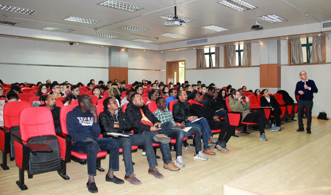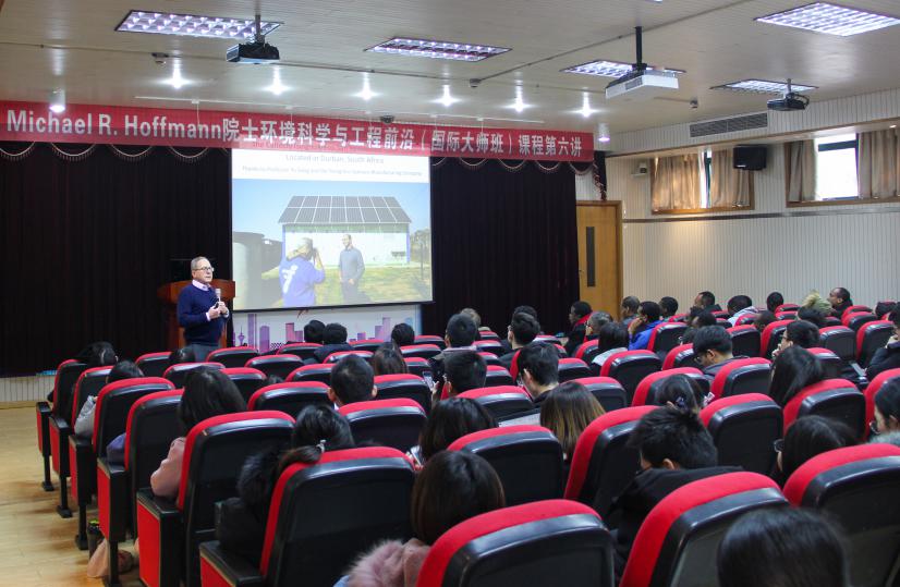 本次受邀出席的主讲人是Michael R. Hoffmann教授,也是国际大师班第二讲的返场教授,在上次的讲座中Hoffmann教授讲座主题是”The Gates Foundation ‘Reinvent the Toilet Grand Challenge’: From a Concept to Manufacturing in 5 Years”,讲了很多关于目前已经在中国宜兴和南非投入使用的ECO-SAN太阳能自循环生态厕所,该设施是Hoffmann教授设计并开发的新科技,主要讲最近5年的发展变化,很多同学表示对此新科技很感兴趣。