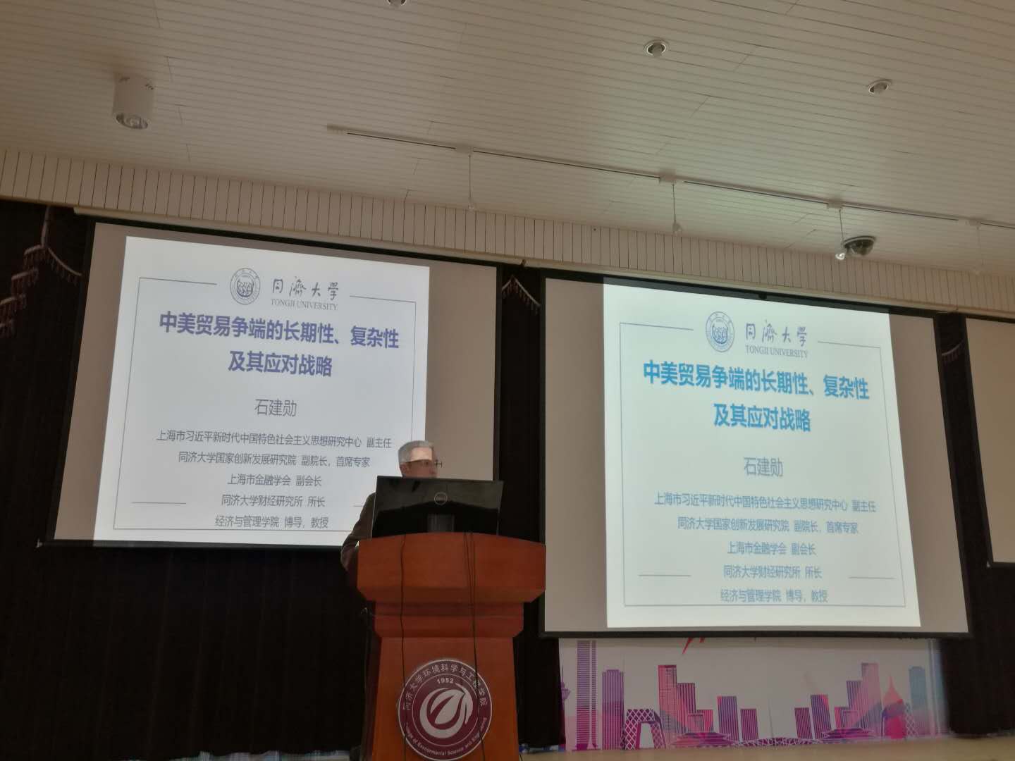 本次全院大会专程邀请同济大学国家创新发展研究院副院长、首席专家石建勋教授做了当前国际形势和贸易战及其应对战略专题报告,石教授先后从三个部分阐述了认清新时期国际形势和中美贸易战的现象和本质,并从自由贸易理论,比较优势理论和全球化理论三大理论,指出了避免陷入三个认识的误区,提出了现阶段中国的应对策略。