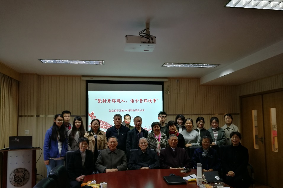 “莫听穿林打叶声,何妨吟啸且徐行”。为让新一代环境人了解同济大学环境学院对我国环境事业及生态文明建设所做出的巨大贡献,传承老环境人严谨求实、自强不息的专业精神,环境学院离退休教师庆祝改革开放40周年座谈会活动于2018年11月27日在同济大学环境学院明净楼118顺利举行。本次活动由同济大学环境学院研究生会和学院传媒中心联合举办。学院的数10名离退休干部、领导和老师、以及学生代表参加本次活动。