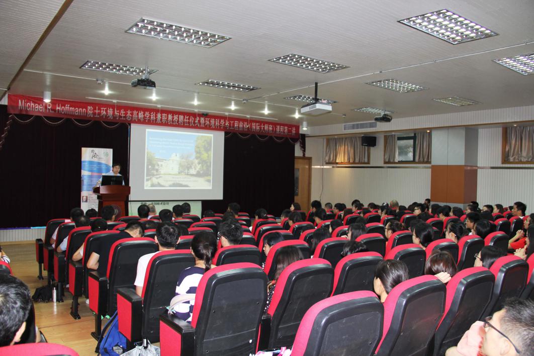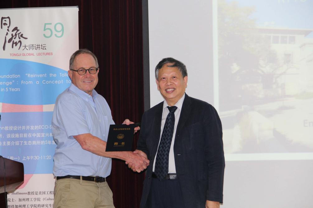 同济大学环境科学与工程学院柳剑雄书记、王志伟副院长、徐斌副院长、楚文海院长助理、王洪涛院长助理、上海污染控制与生态安全研究院副院长吴德礼教授、关小红教授、张超杰副教授、刘佳副教授等教师参加受聘仪式。授聘仪式结束后,环境科学与工程前沿(国际大师班)课程第二讲正式开讲。本次大师班课程为“The Gates Foundation “Reinvent the Toilet Grand Challenge”: From a Concept to Manufacturing in 5 Years.内容关于Hoffmann教授设计并开发的ECO-SAN太阳能自循环生态厕所5年发展变化,该设施目前在中国宜兴和南非已投入使用。课程内容关于很多新科技的实际运用,本次国际大师班课程受到广大师生好评,Hoffmann院士还在现场与师生进行了广泛深入的交流讨论。