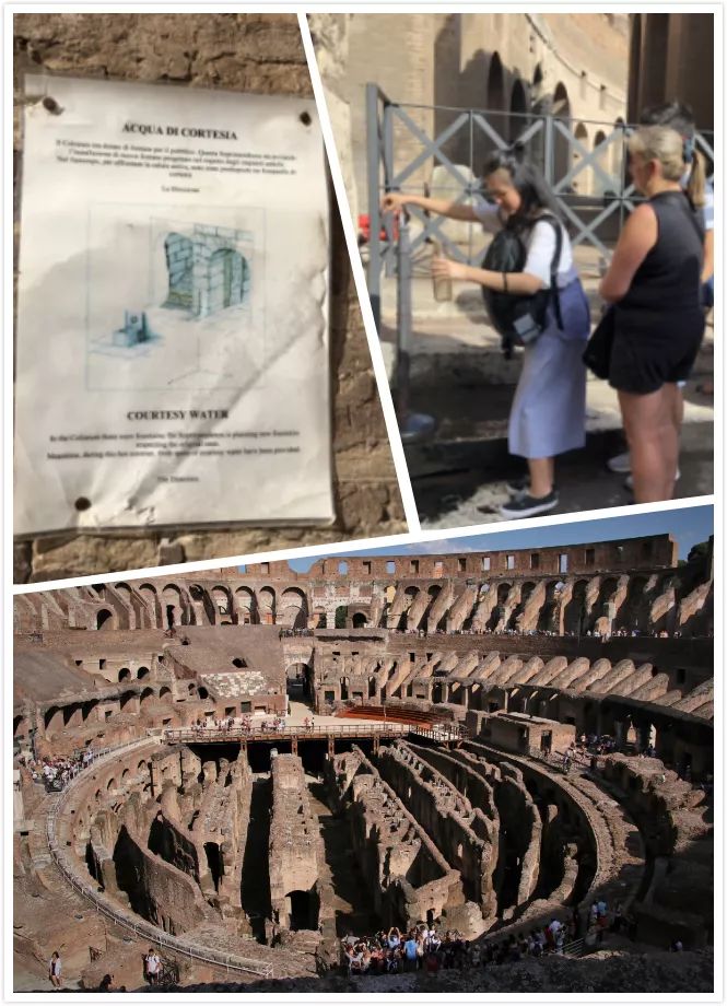 斗兽场结构复杂、气势磅礴,古罗马城市广场保留了古罗马城市的遗迹,细节丰富,从中能看出那个时代的建筑特色。同学们参观过程中发现,这些古代庞大的建筑群都建设有科学复杂的供排水系统。