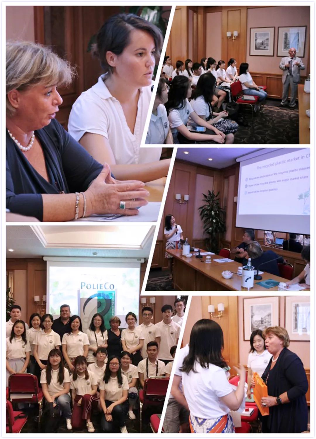 7月16日上午同学们与意大利再生塑料协会Polieco进行了交流。Polieco协会会长与总裁热烈欢迎我院师生的到来,其负责人就该组织的服务内容、宗旨等方面做了详细介绍。我院李咏梅教授亦在会上就学院的教学科研情况进行了交流,展现我院的特色与风采,同时也介绍了中国在废塑料回收方面的政策及现状。