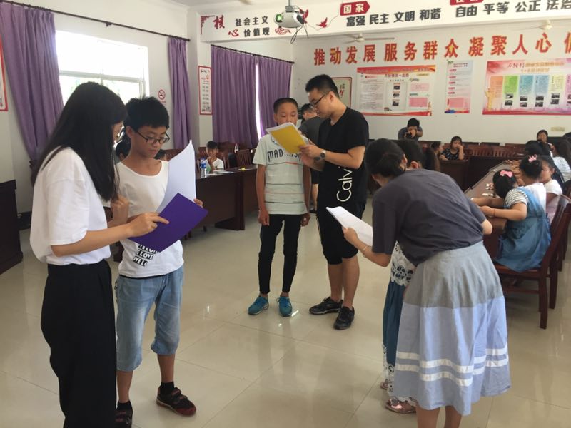 在经过短暂的休息后进行了环保小话剧排练节目,由社会实践成员戴琦主持,在支部成员的一对一指导下,7位小朋友对应着自己的剧本,反复的琢磨台词以及表情、动作要领,最终在大家的配合下完成了一场精彩的环保话剧。
