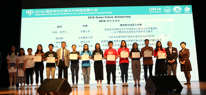 当天,2018年“绿色未来奖”、2017年度“绿苗计划”奖学金举行颁奖仪式。来自全国17所高校环境相关专业30名学生获奖:10支学生团队科研项目获“绿苗计划”奖金资助;10篇研究报告或论文获“绿色未来奖”。此外,由金砖控股集团出资设立的“金砖未来奖学金”也举行了颁奖。北京绿色未来环境基金会理事长张莉、伍江、Ananda Dias等为获奖学生颁奖。