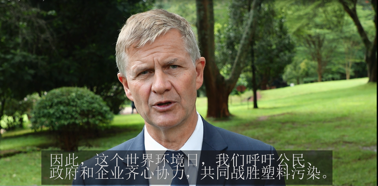 联合国副秘书长、联合国环境署执行主任索尔海姆发来了大会视频致辞,寄语世界环境日和青年学子。他提到全球范围内塑料污染的危害,赞扬中国政府在解决塑料污染问题方面的重要举措,鼓励青年学子践行绿色健康生活方式,减少塑料使用。他回顾了上次访问同济大学时和师生就环保问题的讨论。勉力师生从我做起,改变历史进程。
