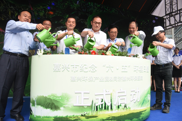 6月4日,嘉兴市政府副市长洪湖鹏,市政协副主席薛佳平、浙江清华长三角研究院副院长张海戈,嘉兴市美丽办主任、嘉兴市环保局党组书记、局长曹建强、同济大学教授、嘉兴同济环境研究院院长赵建夫共同启动活动。