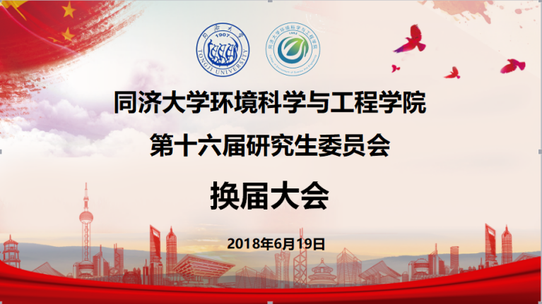 2018年6月19日18:30,同济大学环境科学与工程学院于明净楼4楼报告厅举办了第十六届研究生委员会换届大会。