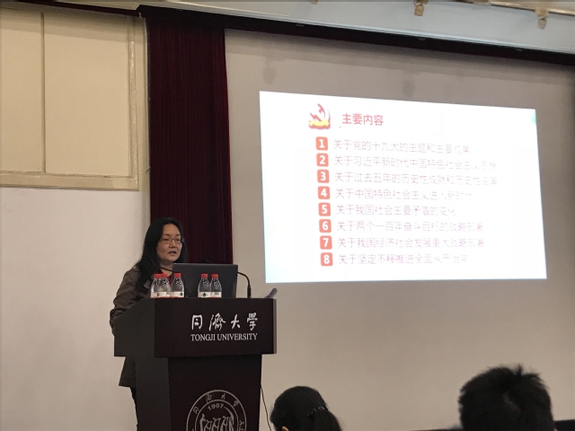 为了深刻学习贯彻党的十九大精神, 2018年5月22日星期二15:30,我院于同济大学逸夫楼二楼报告厅举办党团共建主题培训:以人民为中心——十九大精神学习体会交流。本次活动邀请同济大学马克思主义学院薛念文老师进行主题培训。环境学院党委副书记钱昕老师以及来自全院师生共计180余名党员、入党积极分子、教师参加了此次主题学习活动。本次培训活动由学生总支副书记陆丽君老师主持。