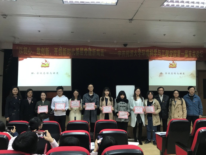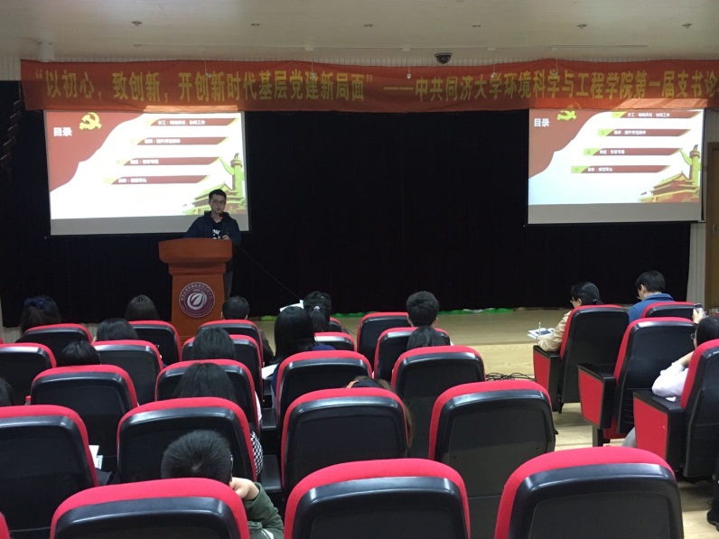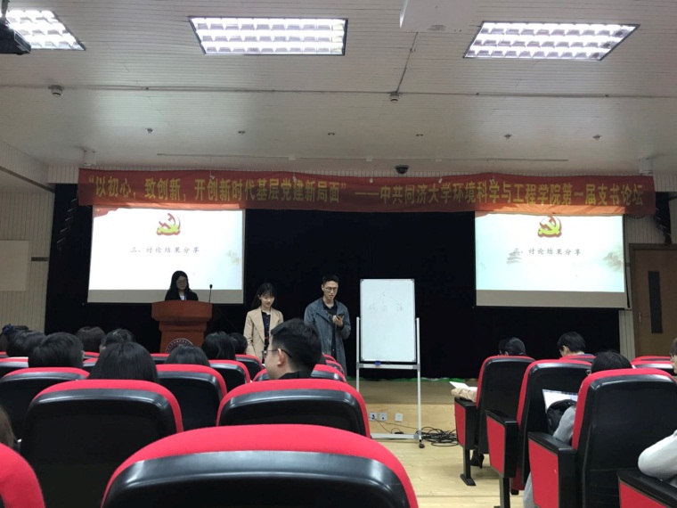 2018年4月14日,由同济大学环境科学与工程学院主办的第一届支书论坛于环境学院121报告厅成功举办。本次支书论坛的主题是“以初心,致创新,开创新时代基层党建新局面”。论坛邀请了柳剑雄、钱昕、陆丽君、王宁、陈颖军、徐斌、于振洋、王洪涛老师作为嘉宾出席,30位来自不同学院甚至学校(包括同济大学环境学院、同济大学建筑学院、同济大学法学院、同济大学化学学院、复旦大学环境科学与工程系)的学生支书及支委参与了历时一天的活动。