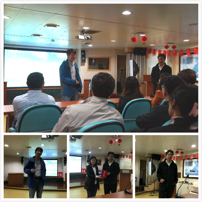 随后,徐宁处长作为本次党课的特邀报告人,带领党员师生一行前往雪龙号多功能厅开展“跨越时空的南极精神”主题党课学习。大家集体学习观看了雪龙号科考专题报告和雪龙号党建工作介绍视频,跨越时空,身临其境地感受到科考人员在极地艰苦的自然环境下,克服重重困难,奋战在科研一线的敬业拼搏精神。雪龙船党支部以中华民族极地考察事业进步为宗旨,具有极强凝聚力,身处艰苦环境的党员们面对困难始终冲在第一线、知难而上,带动科考人员和船员们完成了一项项具有挑战的科考任务,共同创下了中国航海史上多项新纪录。通过徐宁处长的讲解,大家还了解到雪龙号作为我国目前最大的极地考察船,能以1.5节航速连续破冰厚度1.1米(含0.2米雪),且具有很强的续航能力和抗风能力。自1994年首次执行科考任务以来,雪龙号已先后20多次赴南极、8次赴北极执行科学考察与补给运输任务,足迹遍布五大洋,极大推动了为我国极地考察事业的发展。 “雪龙”号还在2014年俄罗斯科考船“绍卡利斯基院士”号的被困营救行动中发挥了关键作用,体现了我国极地工作人员的国际主义精神。此外,徐宁处长和同济大学环境科学系黄清辉副教授还跟大家分享了他们参与第31次南极科考工作中的经历和体会,让党员师生们深刻感受到在极地科考过程中的艰苦、挑战与收获。