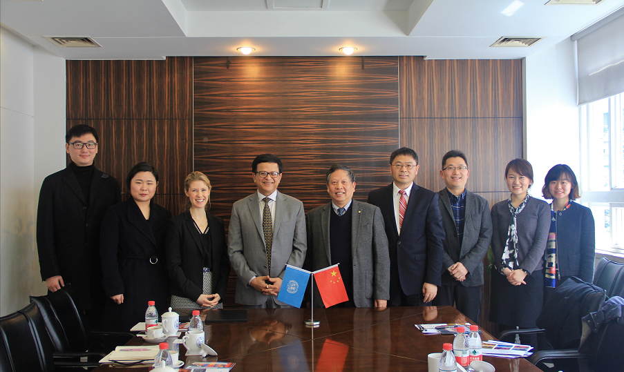 2018年3月6日,上海——联合国助理秘书长、联合国训练研究所(United Nations Institute for Training and Research, UNITAR,训研所)执行主任尼基尔•塞斯先生一行访问同济大学,与常务副校长伍江、联合国环境署-同济大学环境与可持续发展常务副院长李风亭、副院长王信会面,并签署了合作谅解备忘录,将在学生交流培训、专家互访、研究和培训方面展开深入合作。