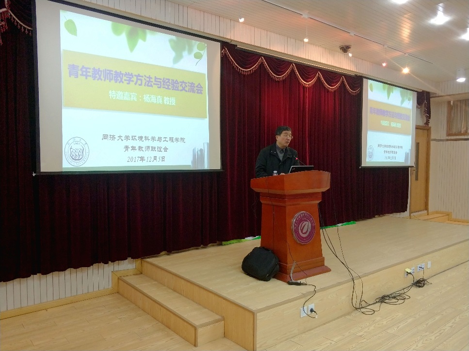 2017年12月5日下午,我院青年教师联谊会联合各系所教师党支部在明净楼121报告厅举行了“青年教师教学方法与经验交流会”。活动邀请到了环境规划与管理研究所杨海真教授,与我院教师分享和讨论了教学法在课堂教学中的应用、教学心得体会以及师生相处等内容。