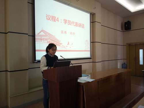 之后,来自环境科学与工程学院的张璐同学作为学员代表发言,她在发言中阐述了自己对党的认识,也表明了此次参加党校培训的态度和决心,代表所有学员感谢学院党委和学生党组织给所有学员们提供进一步深入了解党、认识党的学习机会,他们定当好好学习、深入领导,争取从思想上、行动上、作风上早日入党。