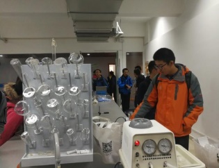 从报告厅移步实验楼,同学们参观了研究院的先进仪器及实验平台。实验室的“亲密接触”对还没开展专业实验课程的同学们是一次难得的学习机会,参观过程中同学们细心观察,踊跃提问。