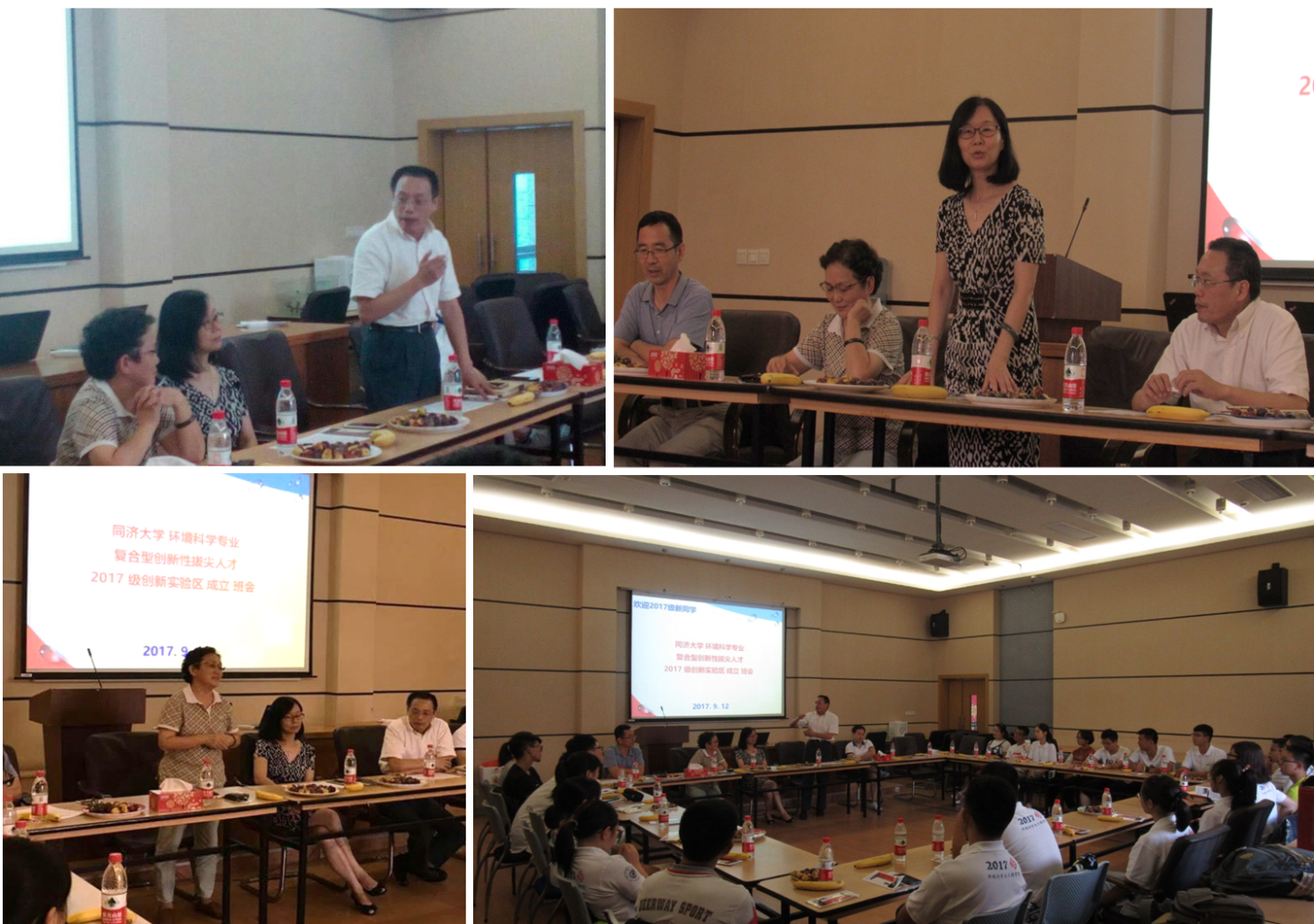 2017年9月12日,2017级环境科学专业复合型创新拔尖人才培养模式创新实验区成立大会在明净楼4楼报告厅举办。环境学院党委书记柳剑雄老师、副院长邓慧萍老师、环境科学系主任陈玲老师、副系主任贺文智老师莅临指导。16级创新区班主任林思劼老师及两位17级创新区班主任盛闻超老师、李少林老师、13级与15级的两位优秀学生代表,也参加并寄语新同学。贺文智老师主持会议。