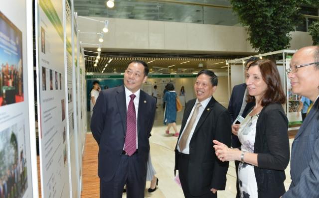 2016年6月6日上午11点,“可持续生产与消费——促进青年参与可持续发展”展览,于同济大学四平路校区综合楼大厅拉开了帷幕。同济大学党委书记杨贤金教授,联合国环境规划署环境政策执行司副司长莫妮卡·麦克德维特女士分别进行开幕致辞。