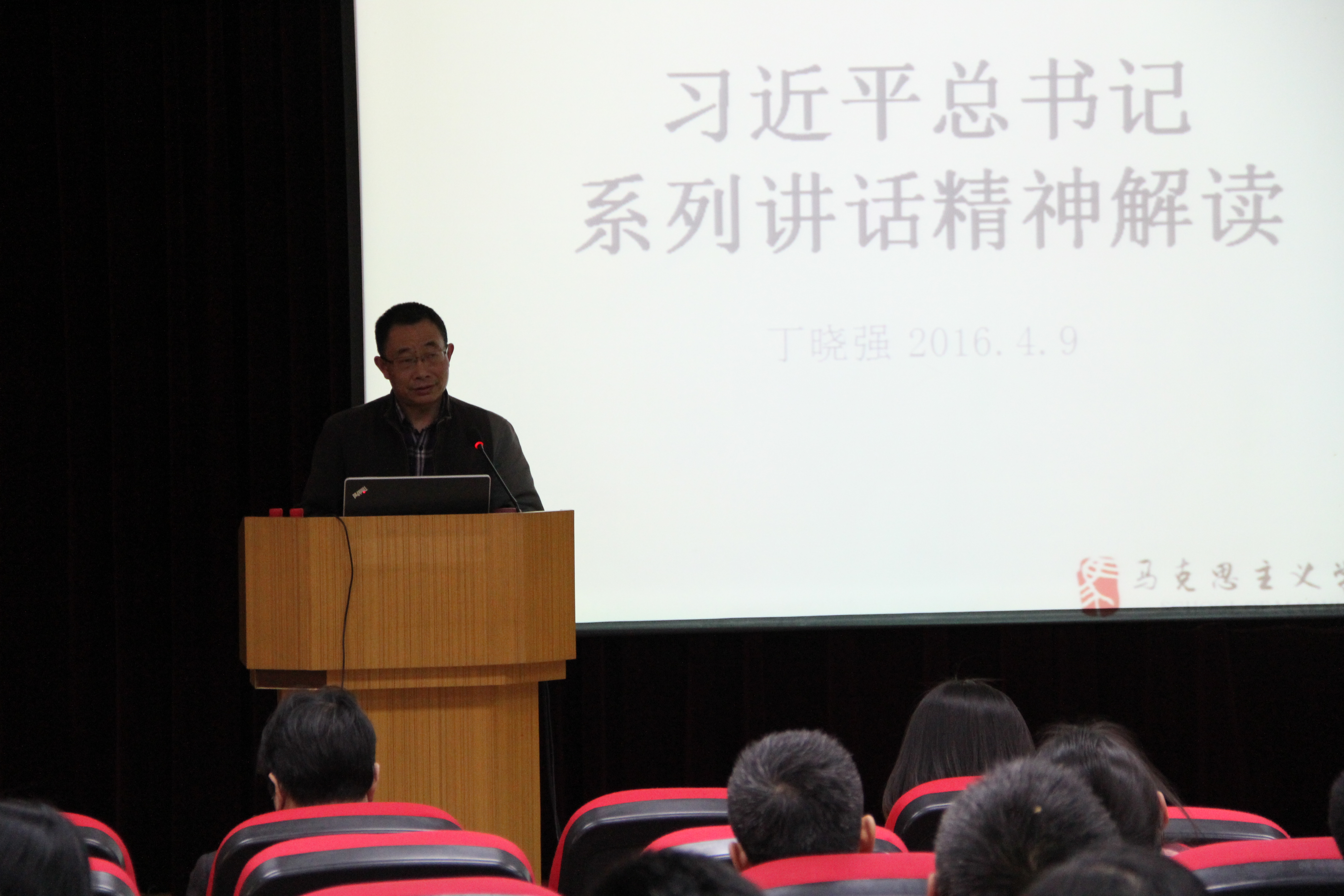 作为“两学一做”教育的重要学习环节,4月19日下午,环境科学与工程学院党委邀请马克思主义学院院长丁晓强教授为全院教职工及部分学生党员代表上了一堂题为“习近平总书记系列讲话精神解读”的专题党课。学院150余名师生参加学习。