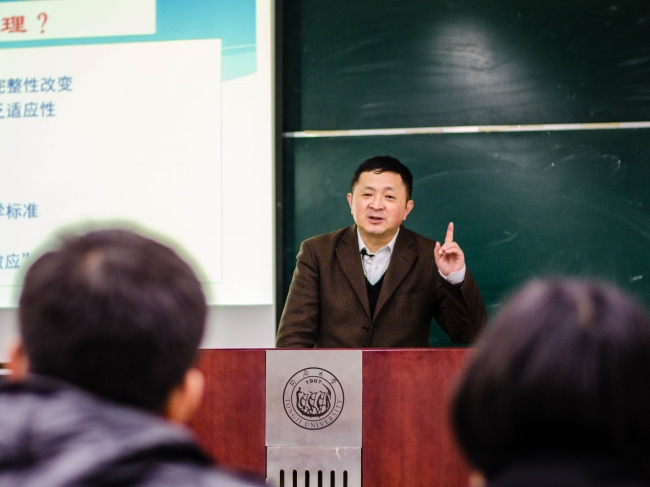 2016年 1月4日,《可持续发展与未来》通识课第十五期在四平路校区和嘉定校区分别举行。在四平校区,同济大学测绘与地理信息学院童小华教授为学生进行了授课,200多名学生聆听了此次讲座。课堂上童教授以《地理空间信息科学及其在全球变化和可持续发展中的应用》为主题,从全球变化与可持续发展问题引入,介绍了有关地理空间信息科学的方方面面,为同学们带来了精彩纷呈的讲座。同时,童教授告诉同学们关于中国自主研发的北斗卫星定位系统以及高分辨率卫星的现状。童教授还举了许多实例来讲解地理空间信息科学技术的实际应用,如GPS和地震中的救援。童教授的讲座幽默风趣,同学们欢笑连连。在讲座的中间和尾声,童教授和学生积极互动,讲述了测量学的分类,包括大地测量学、摄影测量学、地图测量学、工程测量学和海洋测量学。童教授的解答不仅对环境专业的学生有很大的帮助,对于其他学院的同学也有很大的启发。