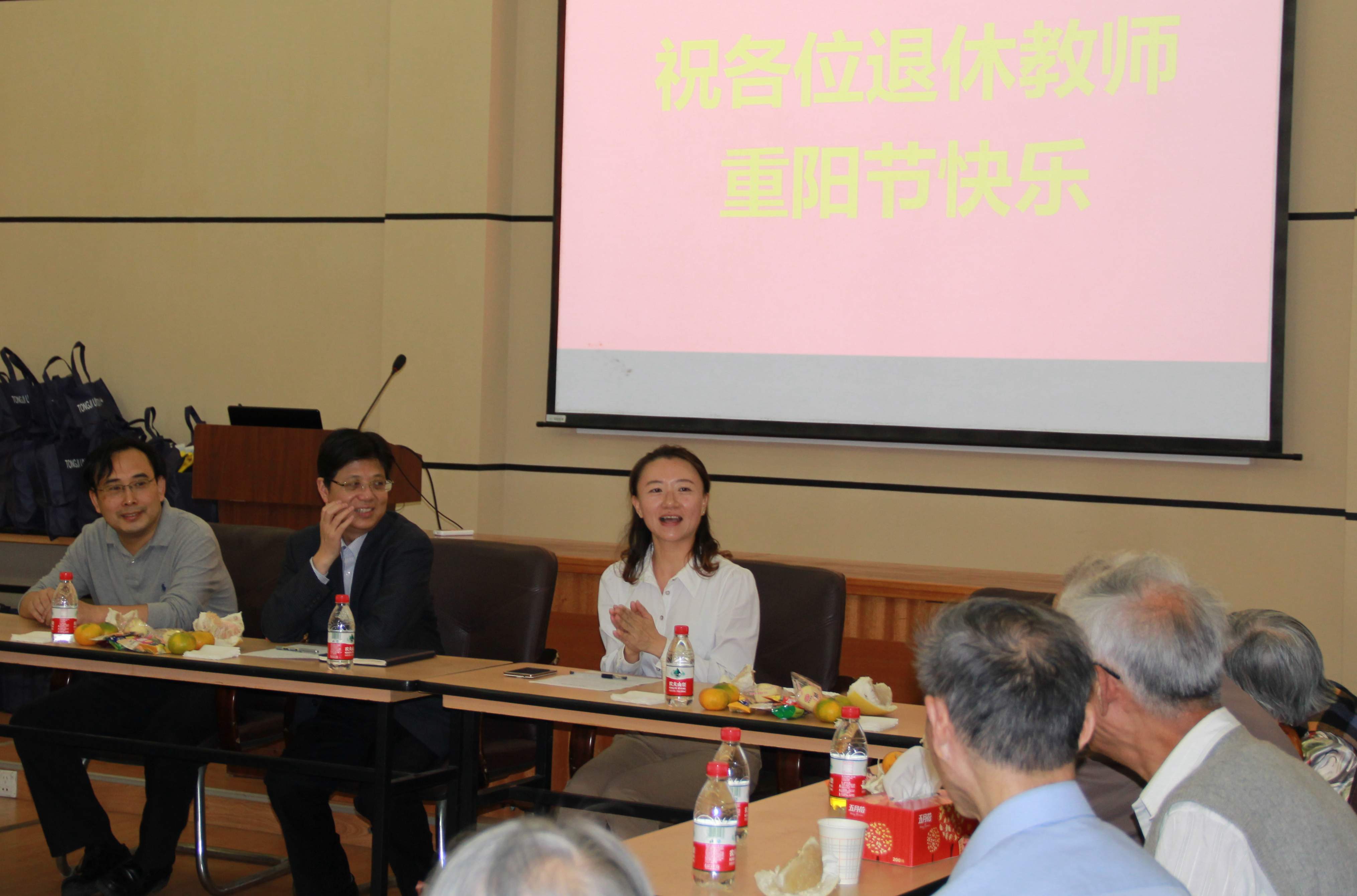 为庆祝重阳节,2015年10月20、21日,我院邀请退休教职工回娘家,在明净楼4楼报告厅举办了重阳节离退休老师座谈会。与会的近60名退休老师欢聚一堂,畅叙情义。