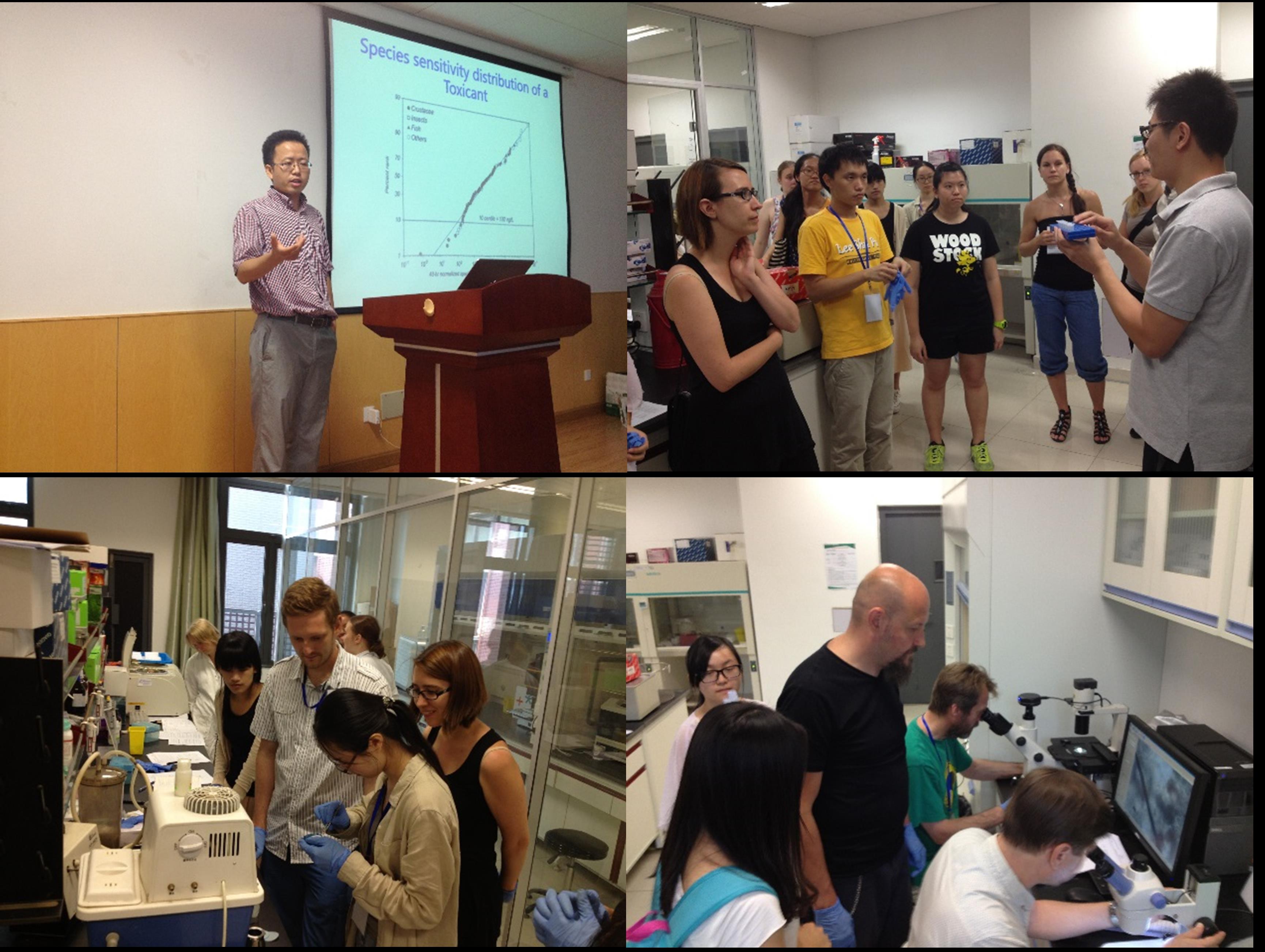 8月6日—8月8日,南京大学张效伟教授为学员做了4场学术报告和讲座,讲授了关于环境新兴污染物PBDEs同系物的暴露、毒性和风险、DNA条形码技术原理及其在水生态学研究中的应用、R语言在生物信息统计分析中的应用,并让其课题组杨靖华博士指导学员分组开展水体DNA提取、纯化和扩增以及DNA测序分析实验训练。